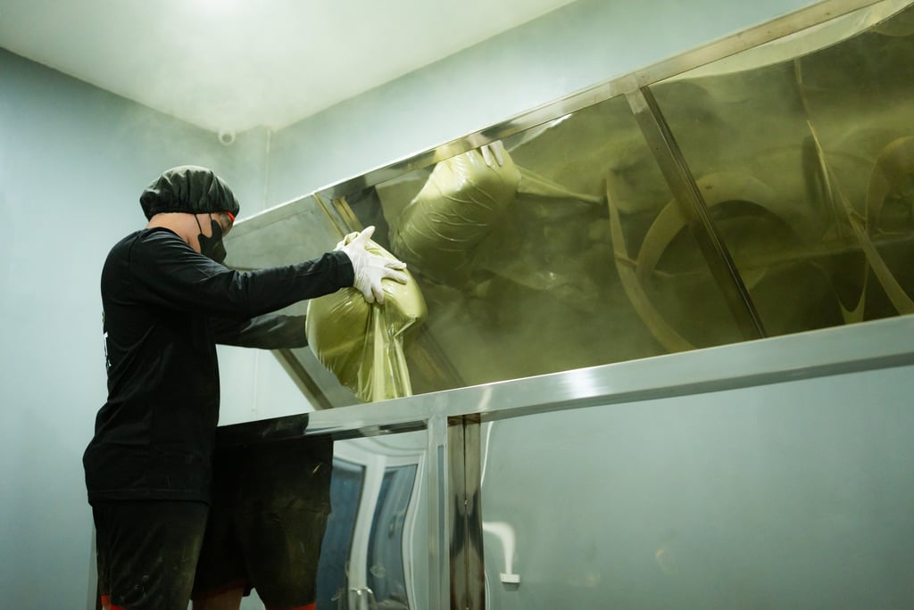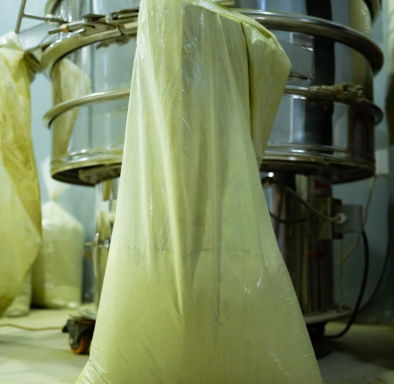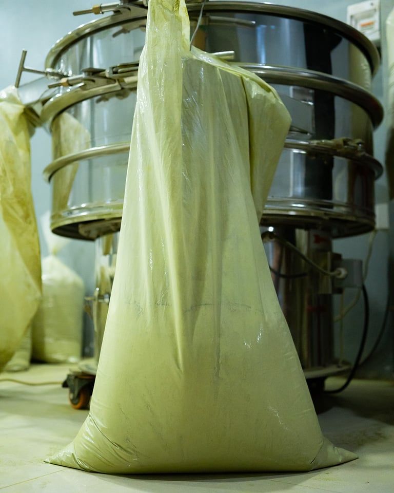 The next process is to pack Kratom crumbs into large plastic and send Kratom crumbs from Jongkong to Pontianak using land routes. After the crumbs arrive at our warehouse, the crumbs will be taken to the milling warehouse to be processed into a Kratom Powder, we use nano and micro (depends on customers order) stainless steel milling machines with food grade and GMP standard.
